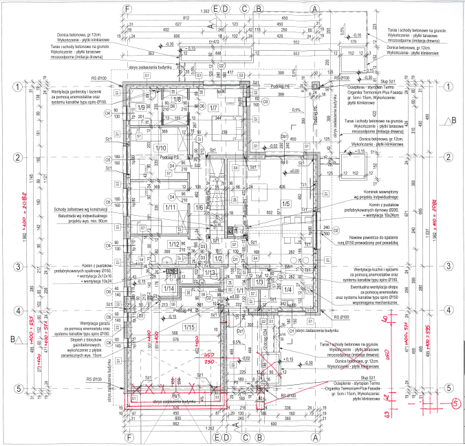 Powierzchnia schodów, murków, tarasów zewnętrznych: